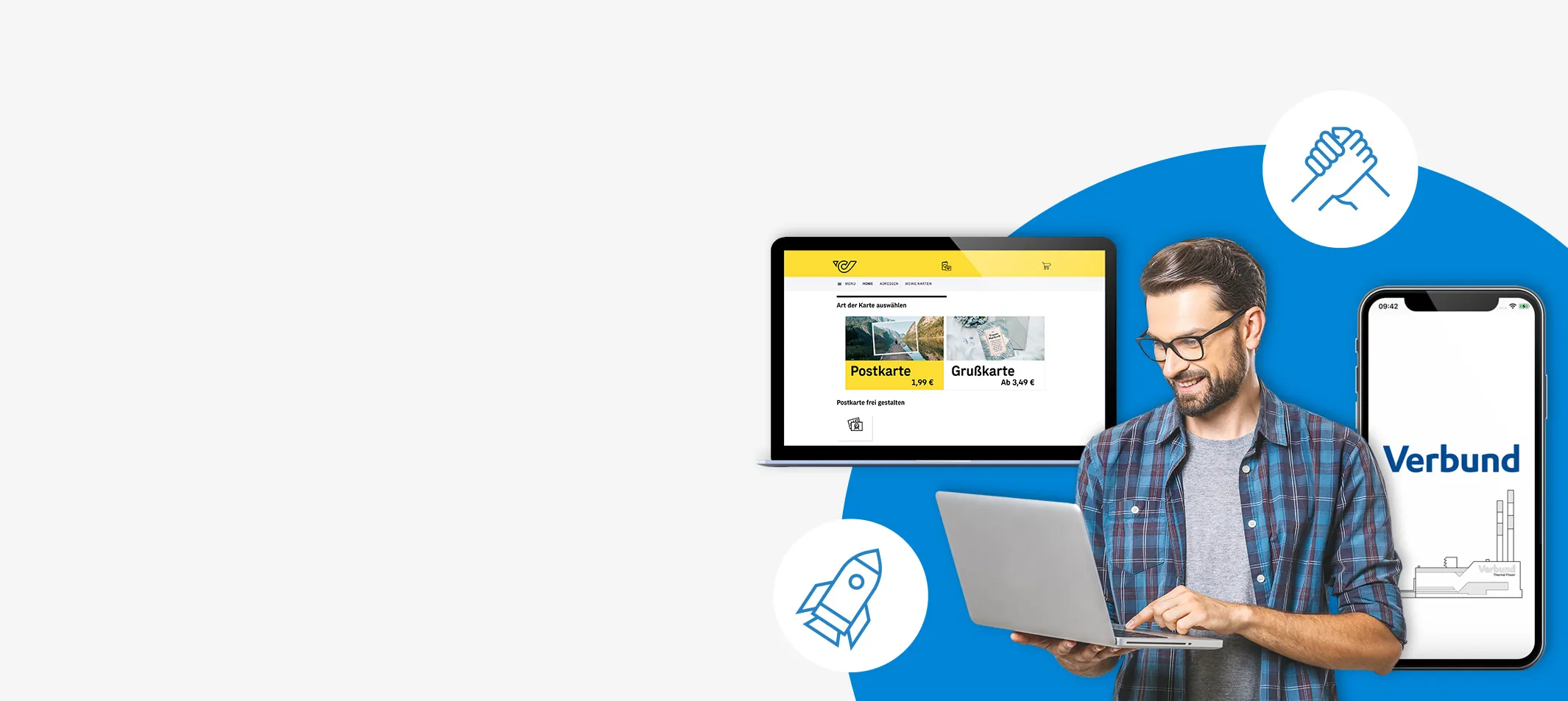 Wir entwickeln Ihre digitale Lösung und übernehmen den gesamten Entwicklungsprozess – von der Konzeption über die Umsetzung bis hin zum Betrieb, einschließlich Wartung und Support.